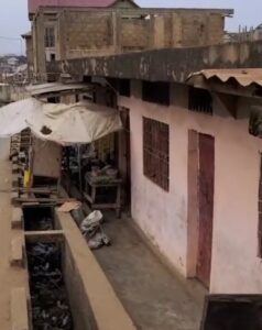 Un bâtiment commercial en construction mais en partie déjà exploité. Avec un projet d’extension sur deux niveaux, le bâtiment est situé sur une artère principale de la ville portuaire de Matadi vers la route Kinduku. Sur le rez-de-chaussée le bâtiment dispose de 5 portes de locaux commerciaux.