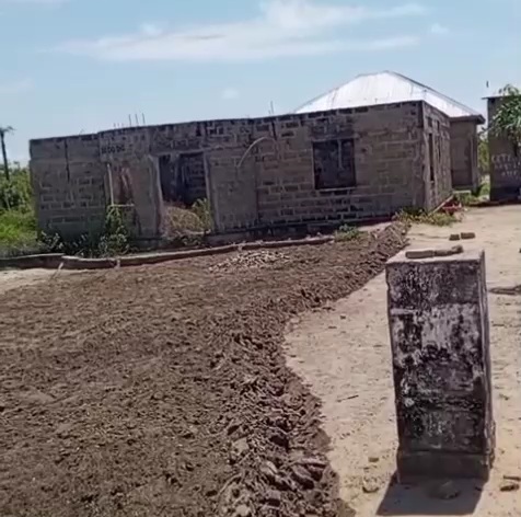 Parcelle de 20 mètres sur 30 mètres dans la ville de Muanda avec une maison inachevée de 3 chambres et 2 salles de bains.