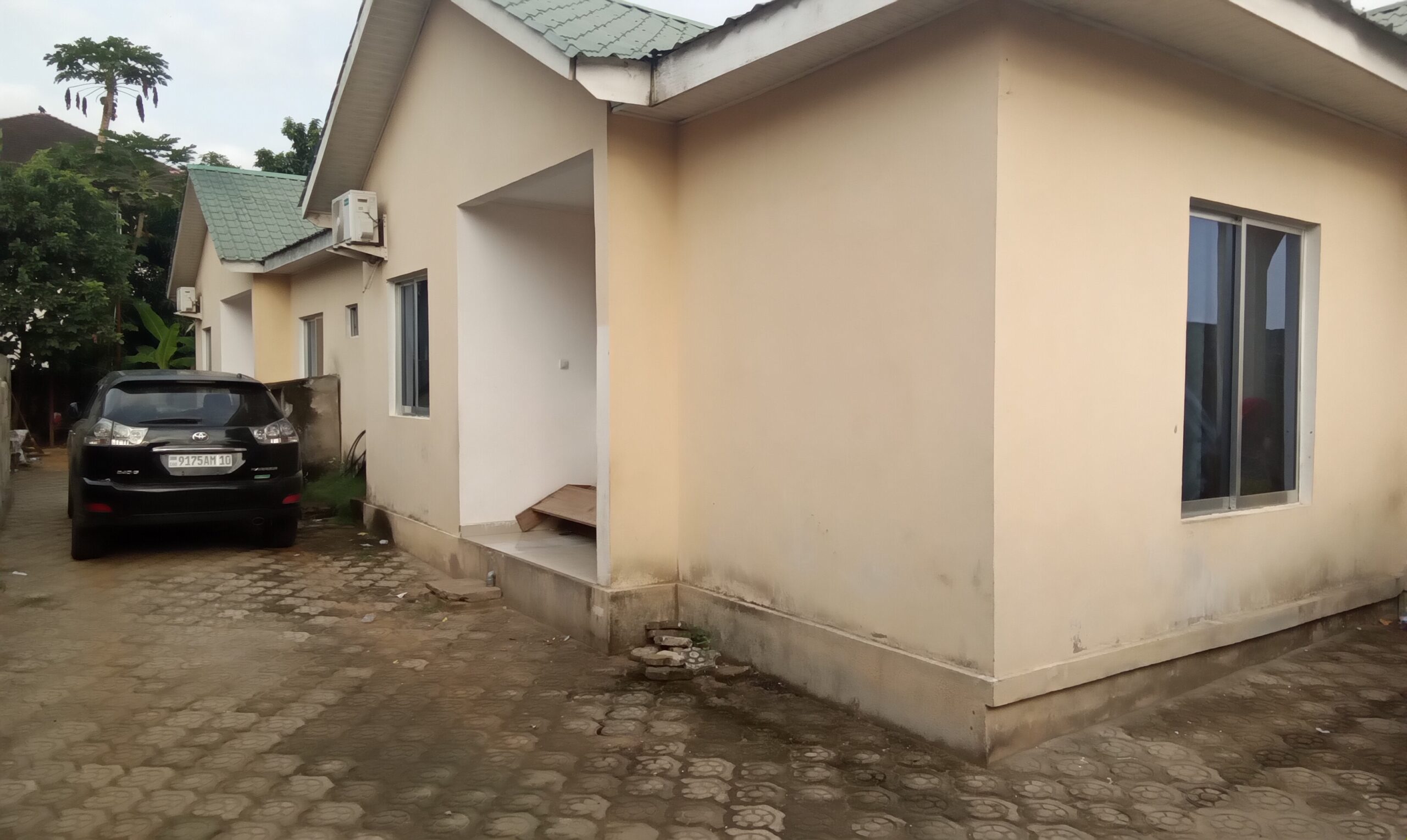 Une parcelle à vendre avec une construction finie de deux maisons jumelées et occupées par des locataires. Chaque maison a 3 chambres, 2 salles de bain, double salon, cuisine.